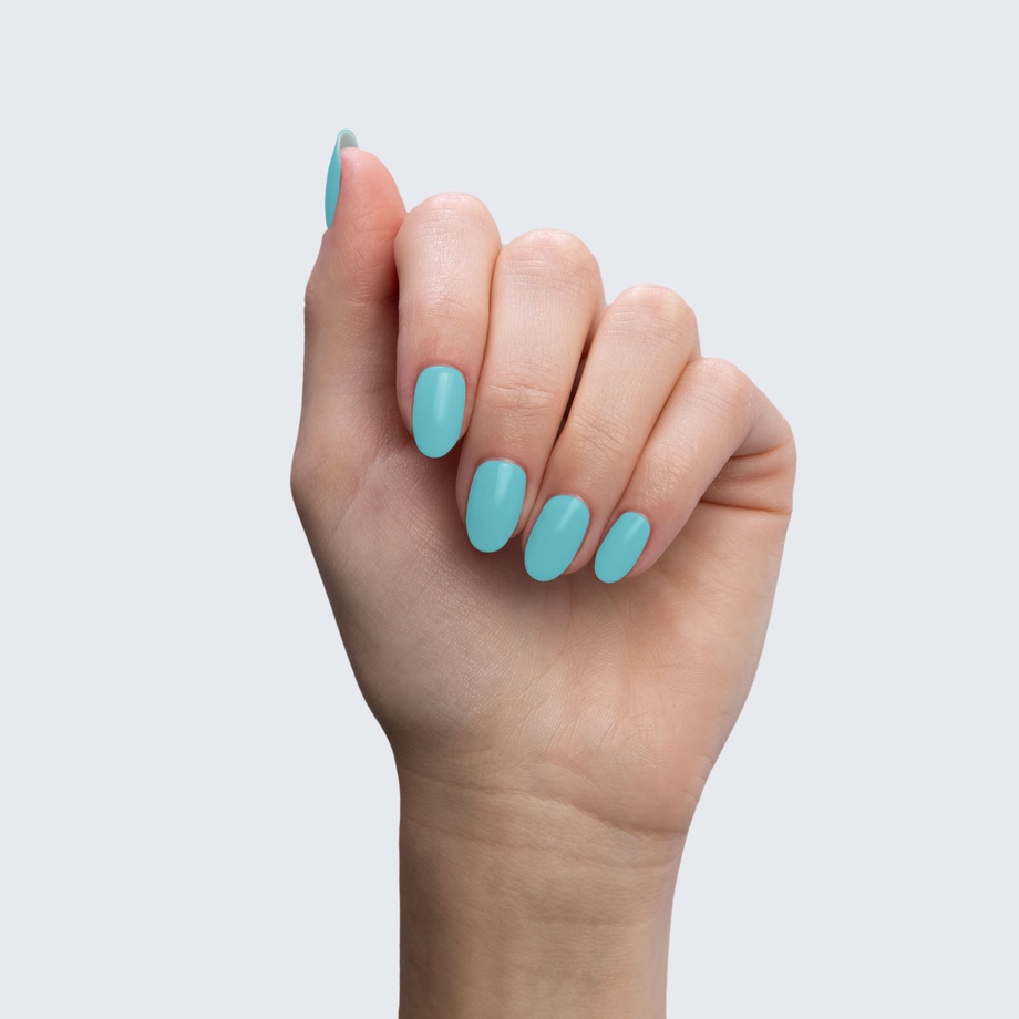 You’ll be glad you took the plunge with this robin’s egg blue polish.